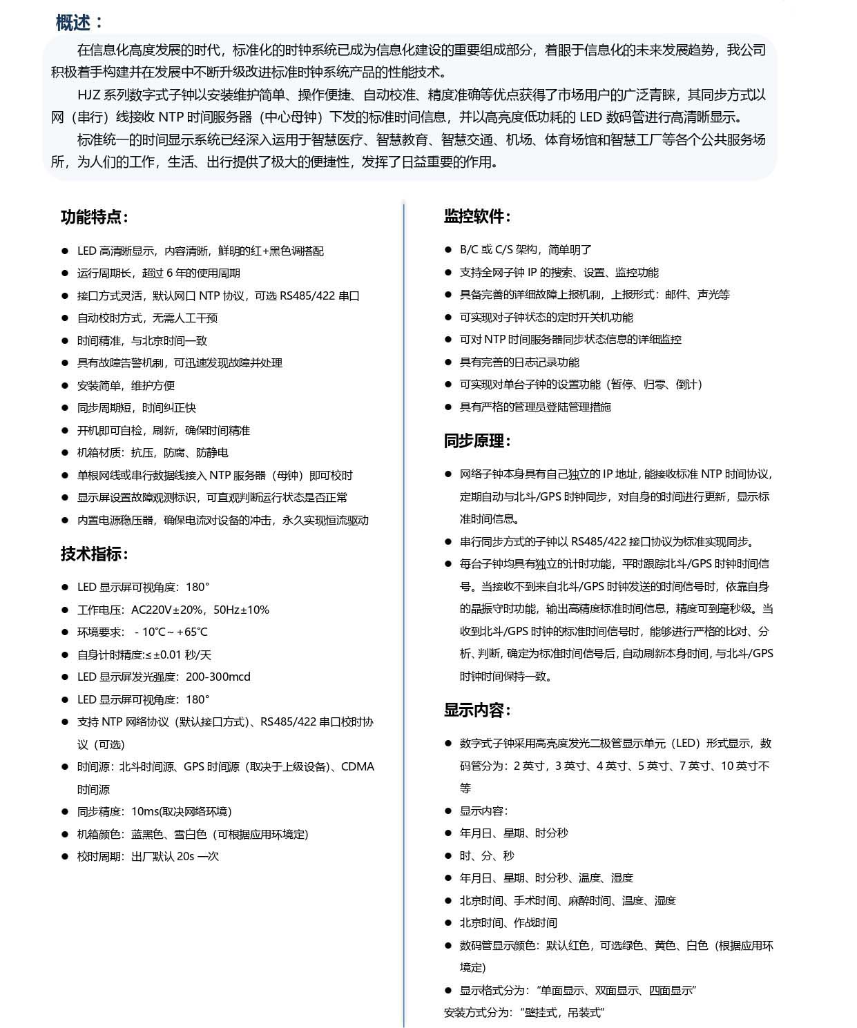 • 標準化的時鐘系統已成為信息化建設的重要組成部分,著眼于信息化的未來發展趨勢,我公司積極著手構建并在發展中不斷升級改進標準時鐘系統產品的性能技術。HJZ系列數字式子鐘以安裝維護簡單、...